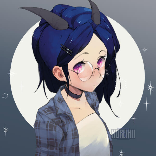 Demon Form: Short dark blue hair, bright pink eyes, a soft and fuzzy tail, and black ivory horns.She also has a darker kind of demon form, but she doesn't talk about that unless she really trusts that person.Samantha specializes in elemental magic and healing as well.